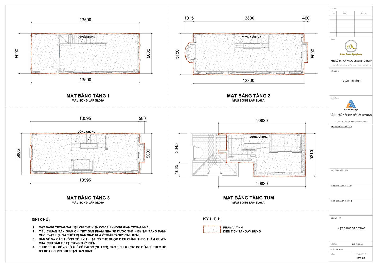 Bản vẽ Mẫu Sl06A biệt thự song lập không hầm Khu đô thị An Lạc Green Symphony. Liên hệ bán hàng 0919.875.966