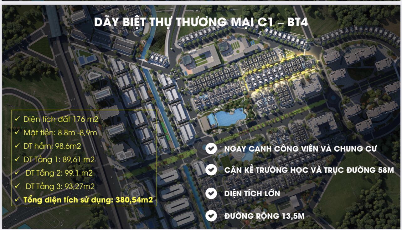 - Liền kề, shophouse thương mại có diện tích từ 88m2-300m2