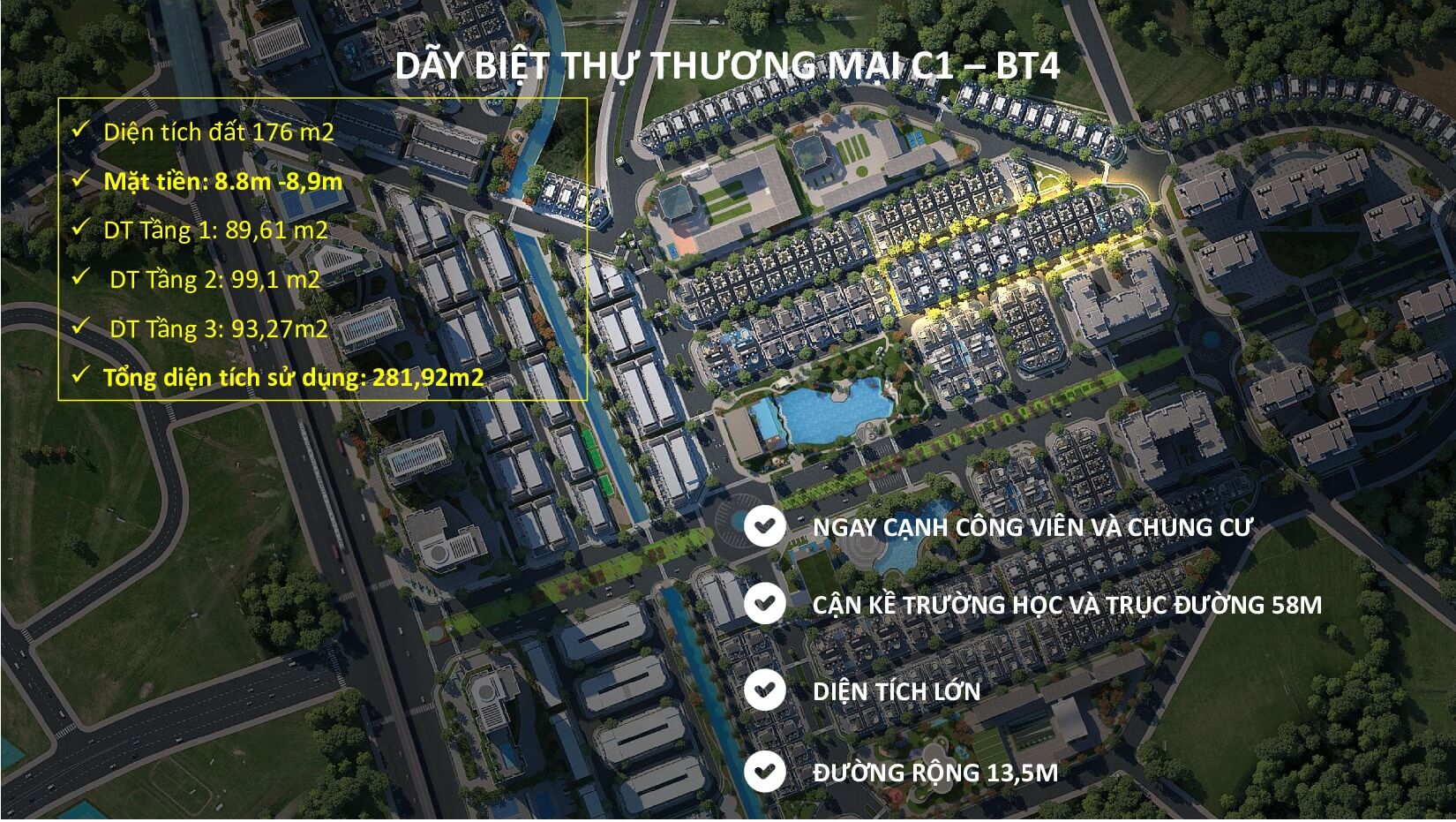 - Liền kề, shophouse thương mại có diện tích từ 88m2-300m2 có giá bán từ 111 triệu/m2