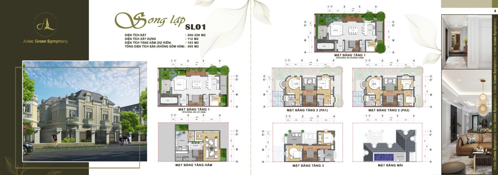 - Biệt thự đơn lập, biệt thự song lập, biệt thự thương mại có hầm diện tích 126m2 – 500m2 giá bán từ 99 triệu/m2