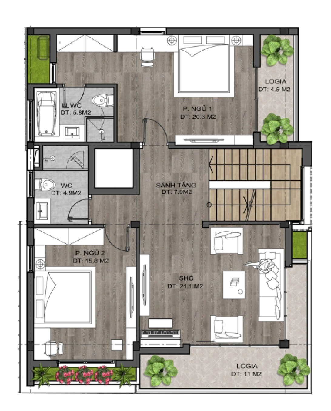 • Diện tích nền đa dạng từ 90 m2 – 400 m2. Trong đó: