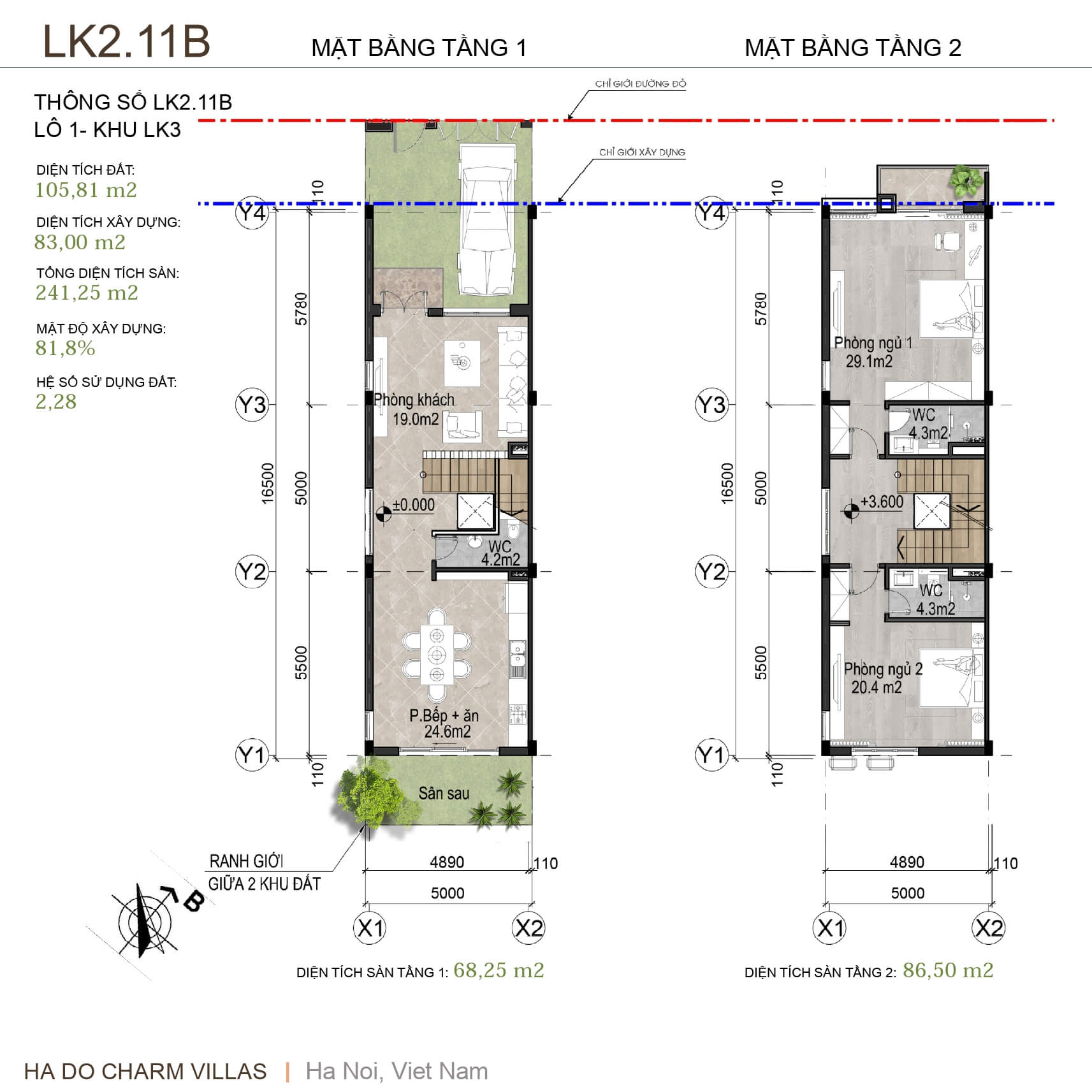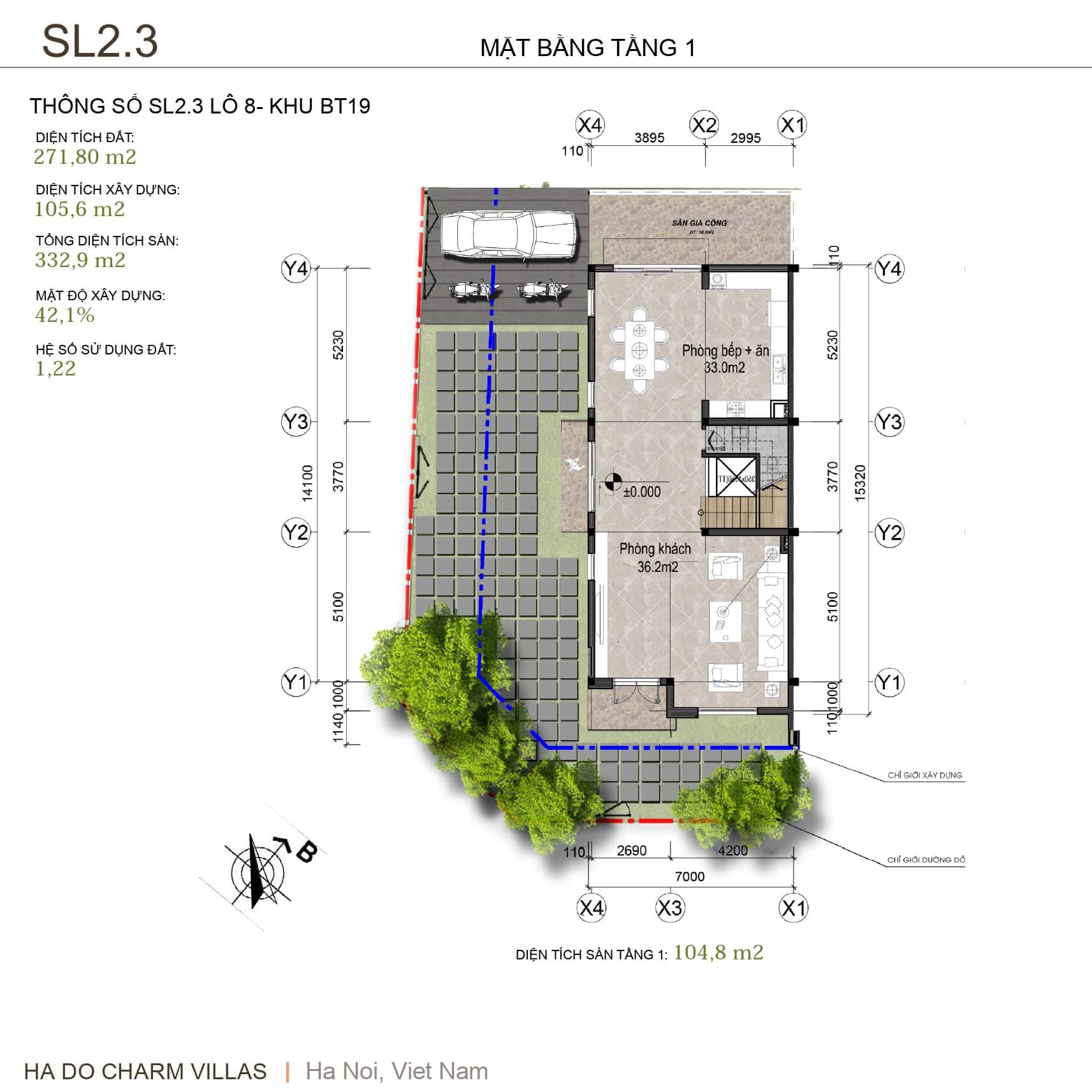 Thông tin mặt bằng thiết kế biệt thự đơn lập Hà Đô