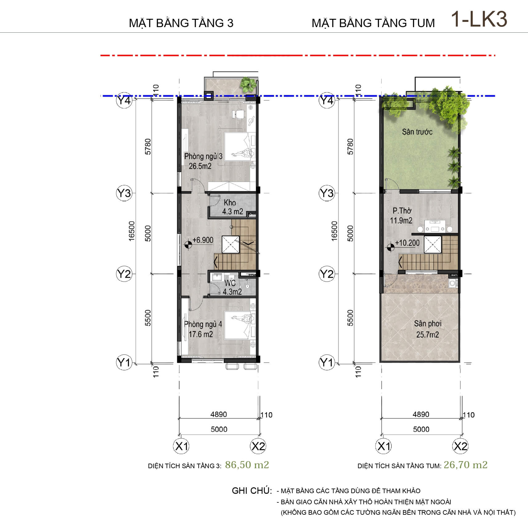 • Số tầng: 3 tầng + 1 tum