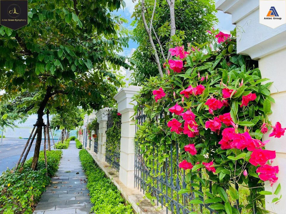 Các tuyến đường nội khu và cảnh quan xanh trong từng phân khu biệt thự và liền kề được phủ cây xanh và hàng rào hoa tươi tạo nên một thảm thực vật nhiều màu sắc phong phú mang đến những khoảng xanh bình yên riêng tư cho những chủ nhân biệt thự mới dọn về sinh sống.