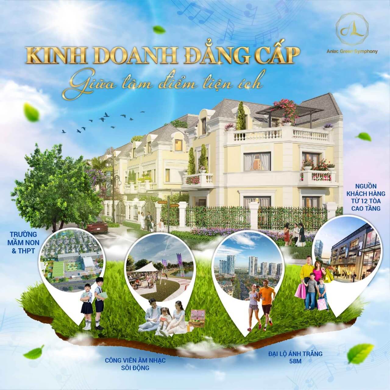 Là viên kim cương sáng giá của đại đô thị 75ha tiêu chuẩn 5 sao bán khép kín đầu tiên tại phía Tây – Biệt thự thương mại Anlac Green Symphony đã khẳng định sức hút và khả năng cạnh tranh mạnh mẽ khi sở hữu vị trí tâm điểm được bao quanh bởi hàng loạt những tiện ích giúp tối ưu cho việc kinh doanh. Đặc biệt là các loại hình kinh doanh Luxury