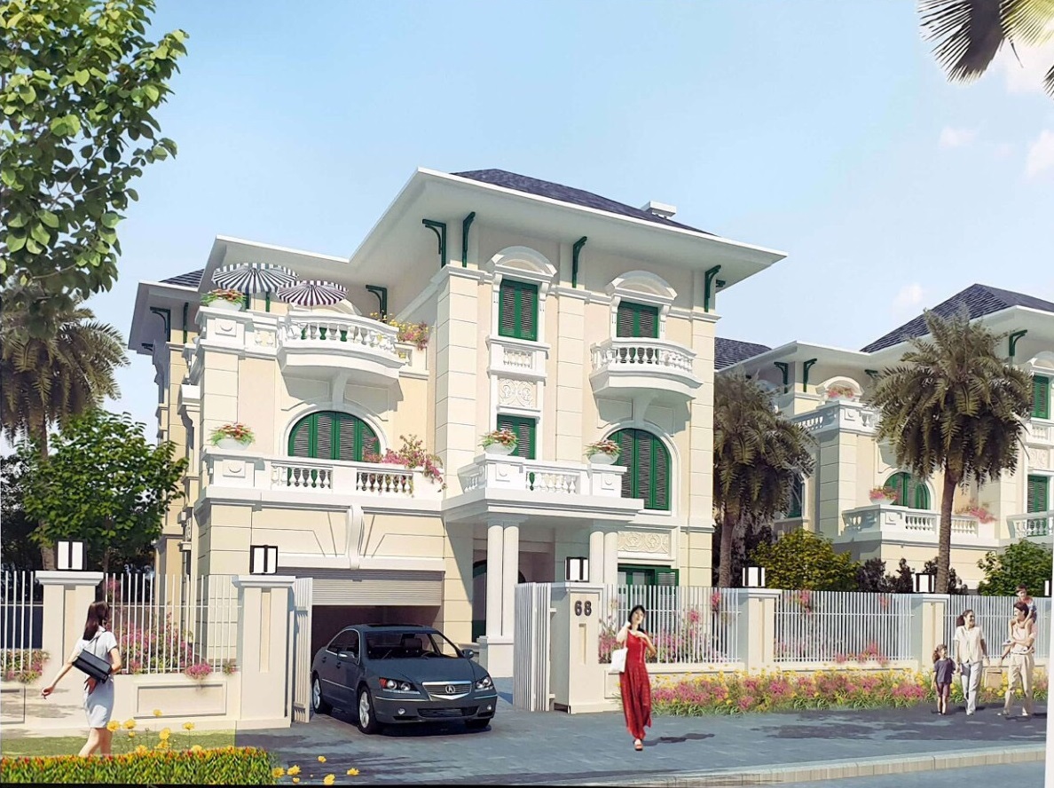 Được thiết kế 3 tầng nổi, không làm tầng hầm với rất nhiều mẫu khác nhau. Mật độ xây dựng 40%. Khoảng cách là 6m nhằm đảm bảo không gian rộng rãi hài hòa giữa các căn biệt thự. Cụ thể: