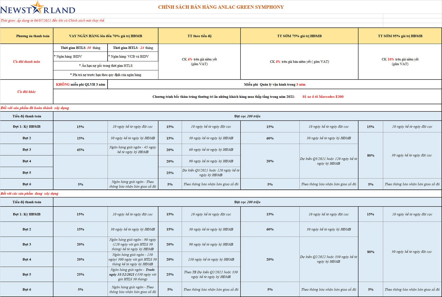 Phương án dòng tiền của Chủ đầu tư An Lạc tháng 8/2021