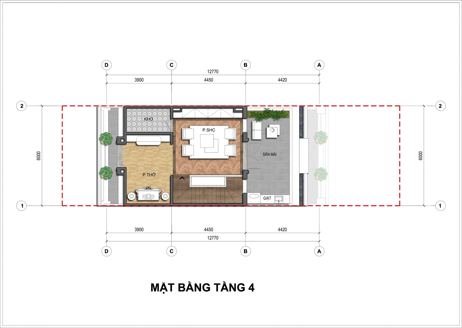 - Số tầng cao: 4 tầng + 1 tum