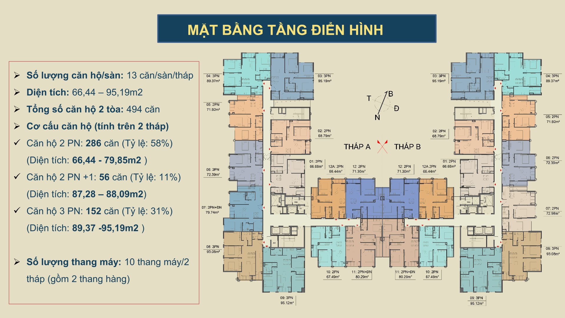 • Số lượng căn hộ/sàn: 13 căn/sàn/tháp