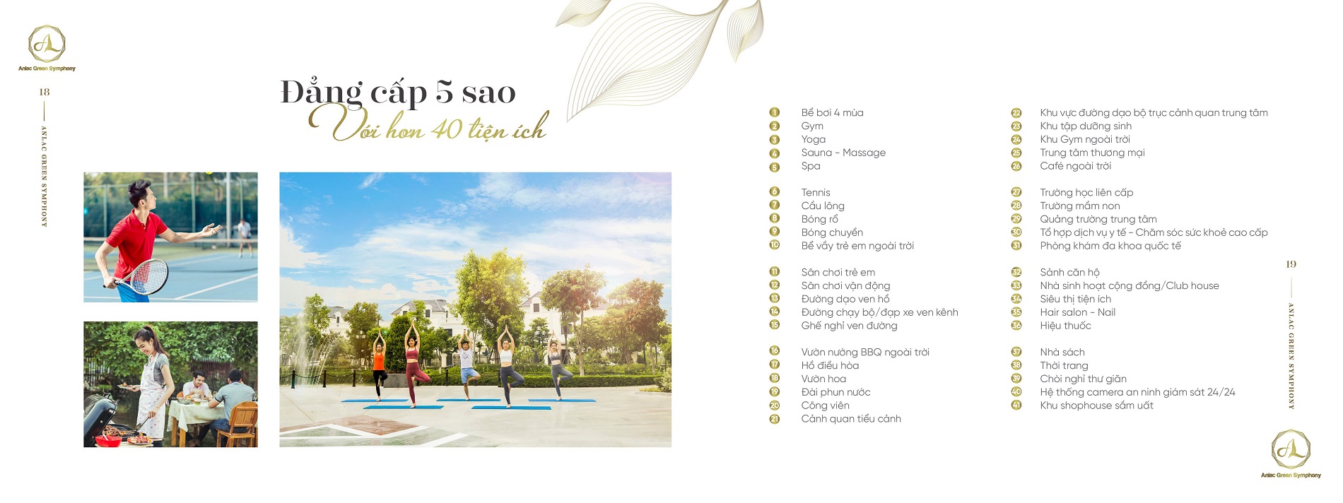 ④. Dịch vụ tiện ích đồng bộ Hướng đến một khu đô thị kiểu mẫu đẳng cấp ngay cửa ngõ trung tâm tại phía Tây Hà Nội, dự án An Lạc Green Symphony được xây dựng theo mô hình với cảnh quan kiến trúc độc đáo dành được sự đầu tư tâm huyết của tập đoàn An Lac khi trang bị chuỗi tiện ích và dịch vụ cao cấp đạt tiêu chuẩn quốc tế đáp ứng những nhu cầu sống khắt khắt khe như một khu nghỉ dưỡng cao cấp..