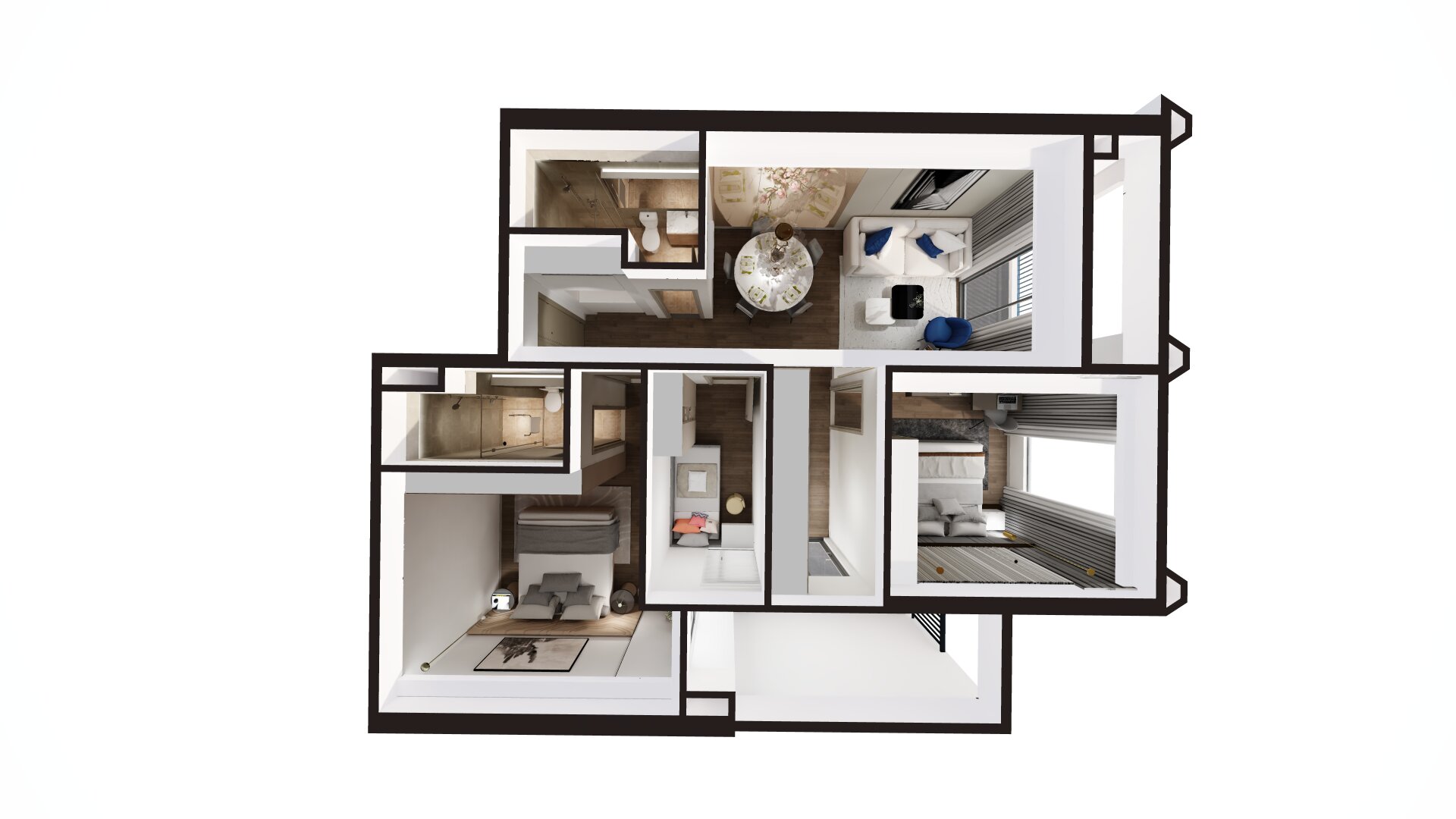 • Căn hộ 2 phòng ngủ : 286 căn ( Tỉ lệ: 58%) với diện tích 66.44m2 – 79,85m2