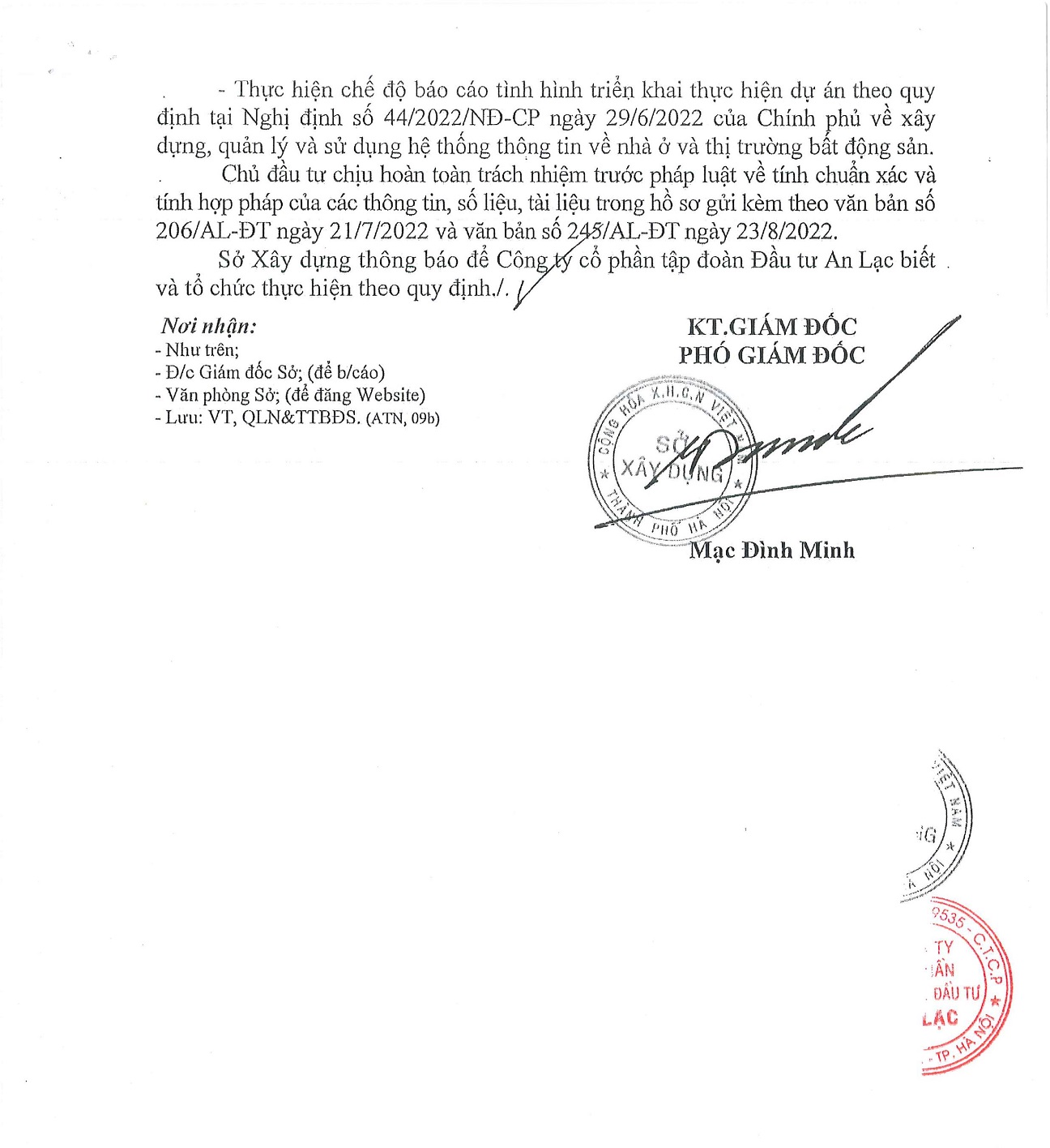 PHÒNG KINH DOANH CHỦ ĐẦU TƯ AN LẠC GREEN SYMPHONY