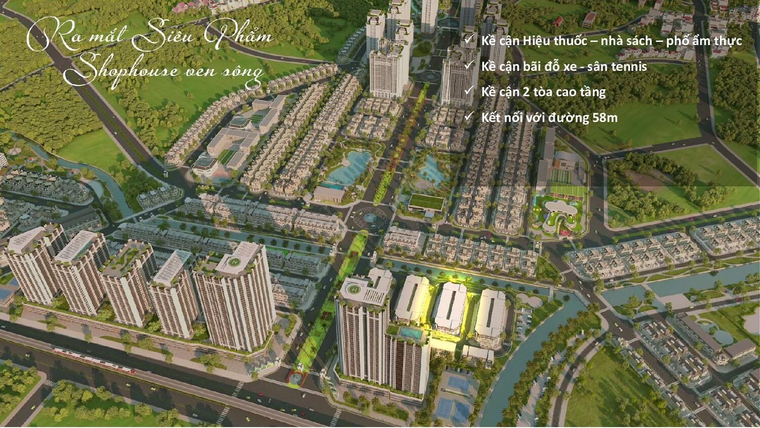- Liền kề, shophouse thương mại có diện tích từ 88m2-300m2 có giá bán từ 111 triệu/m2