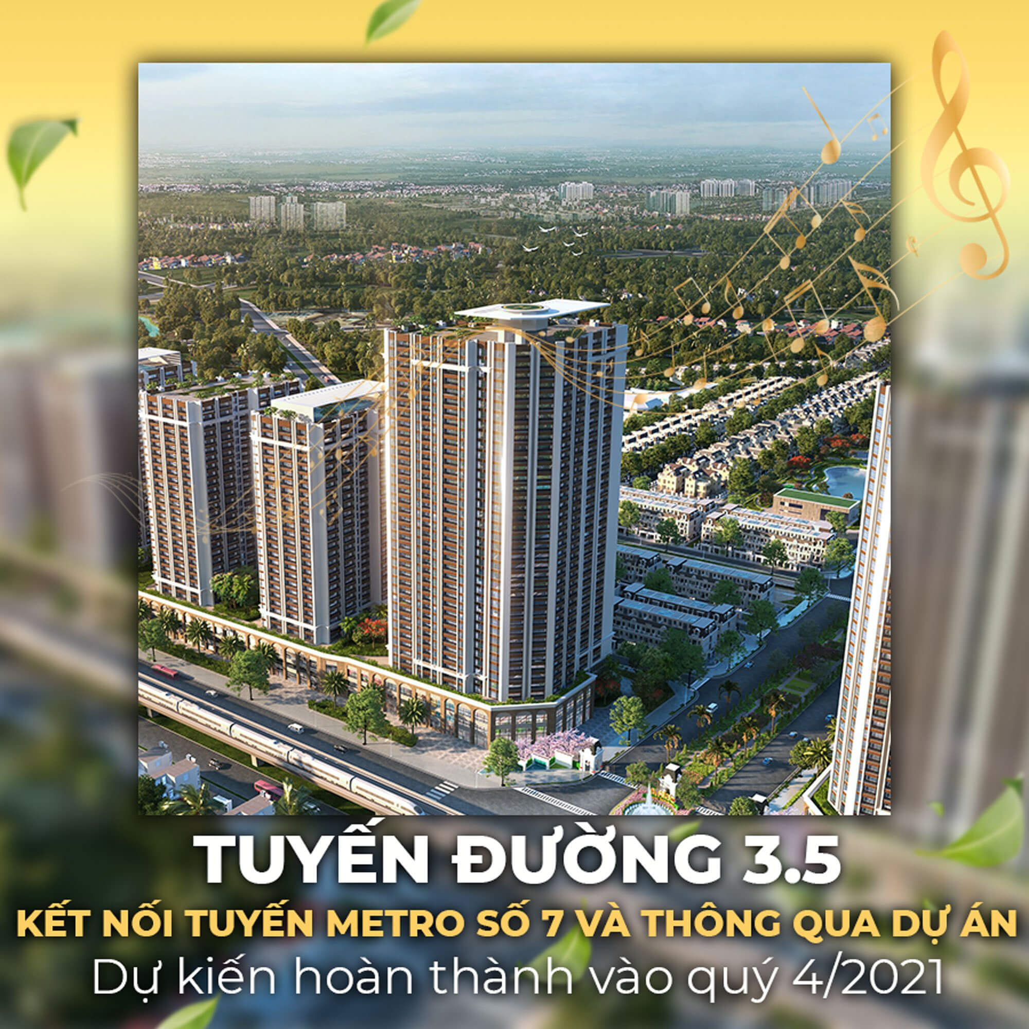 Đường 3.5 xây dựng xong đoạn qua dự án vào khoảng tháng 12/2021; thông tuyến dự kiến vào tháng 12/2022. Ngày 21/6 này sẽ diễn ra Lễ Bàn Giao Nhà Phân Khu Thấp Tầng, chính thức đón những cư dân đầu tiên về nhận nhà!